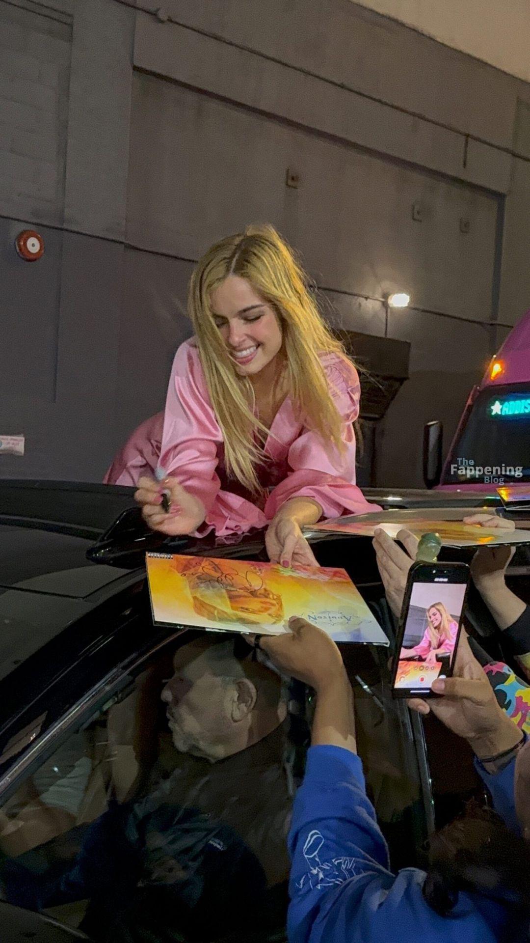 Addison Rae stunned fans in NYC in a silky pink satin mini dress. She was signin’ autographs and showin’ off her toned legs.