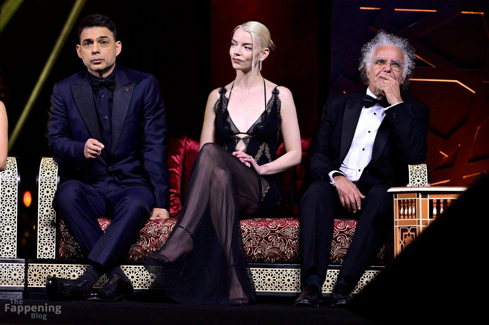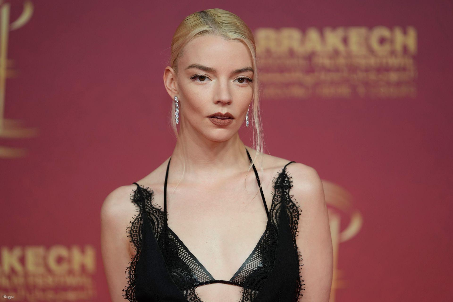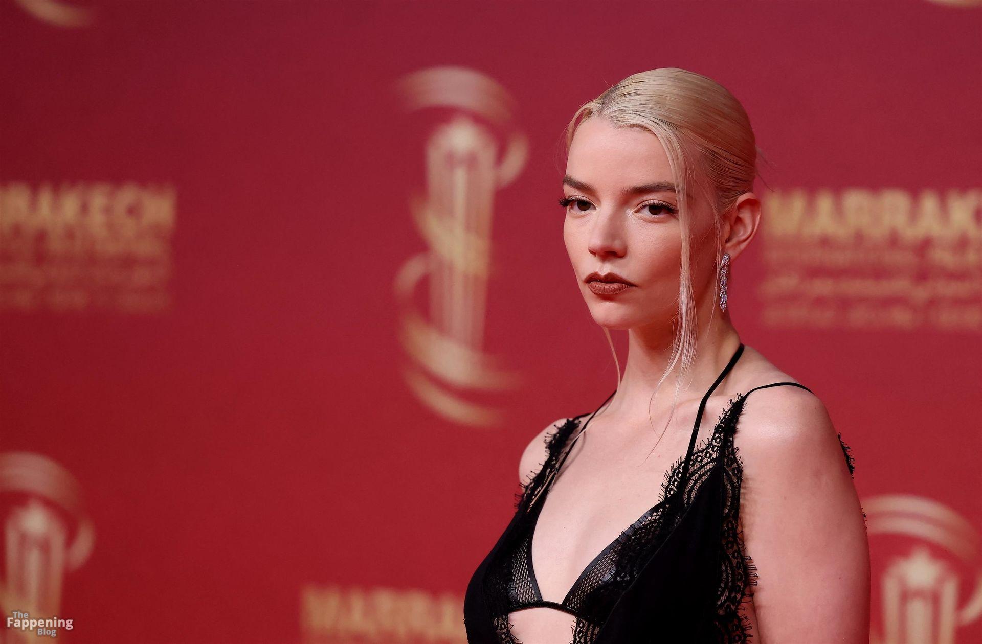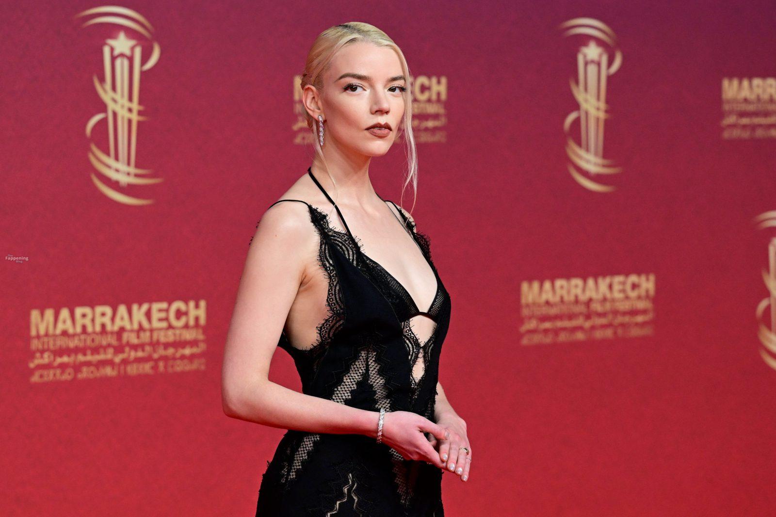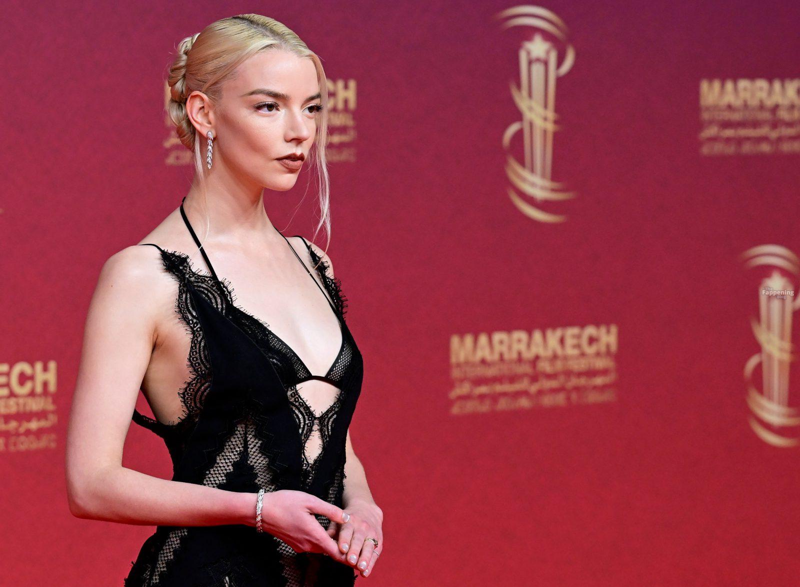 US actress Anya Taylor-Joy poses in a sheer lace dress showin’ her legs on the red carpet as she arrives for the closing ceremony of the 22nd Marrakesh Film Festival (FIFM) in Marrakesh.