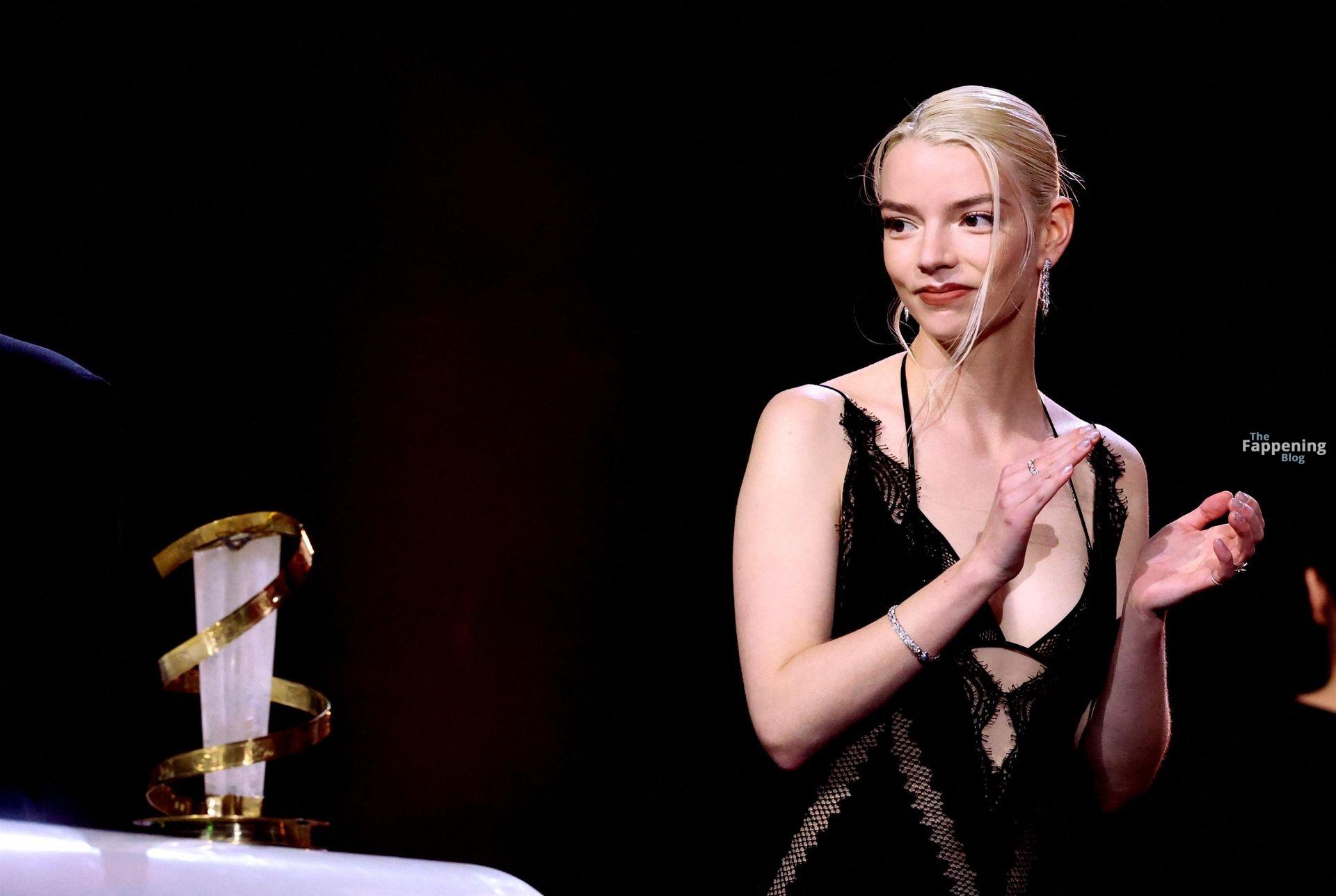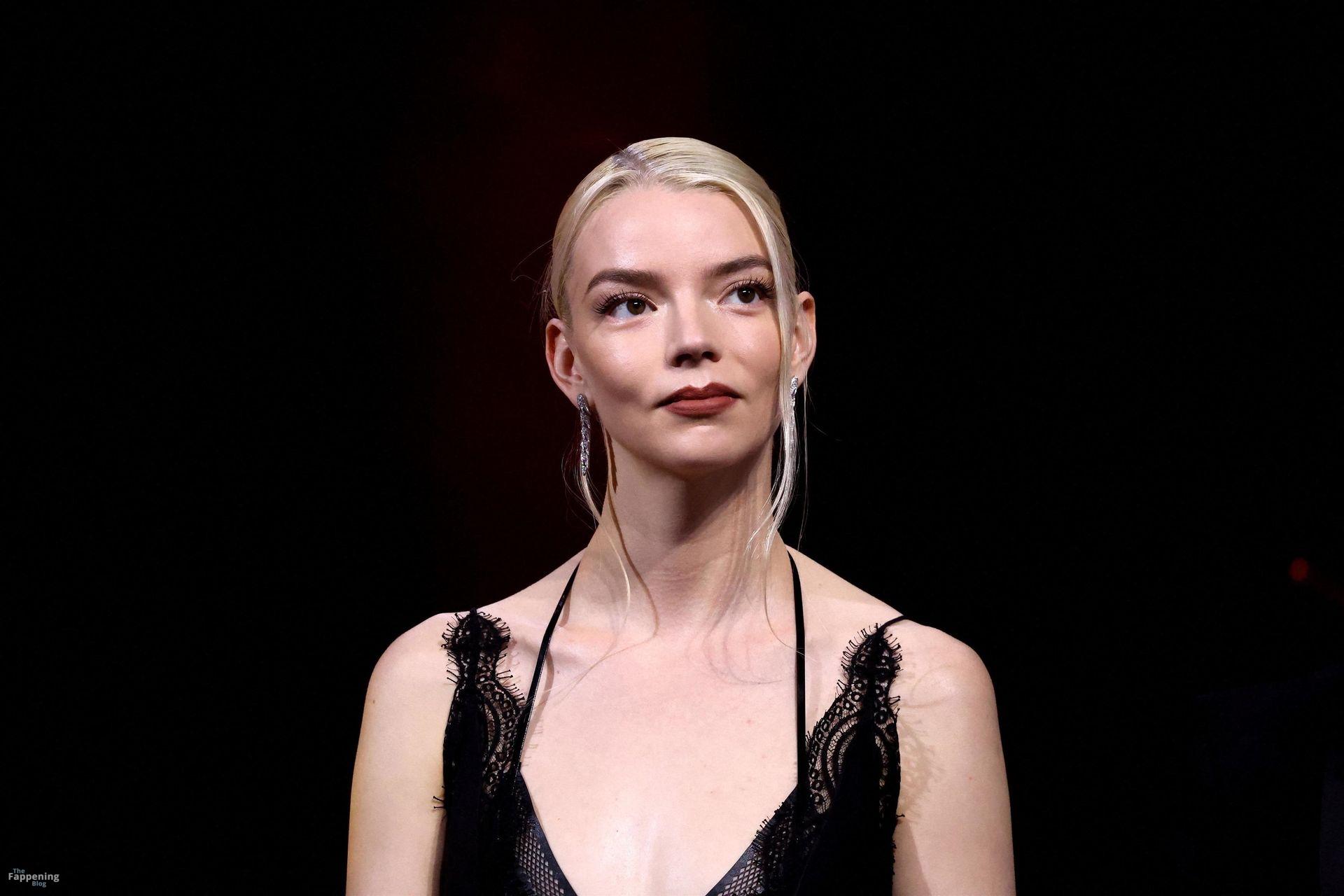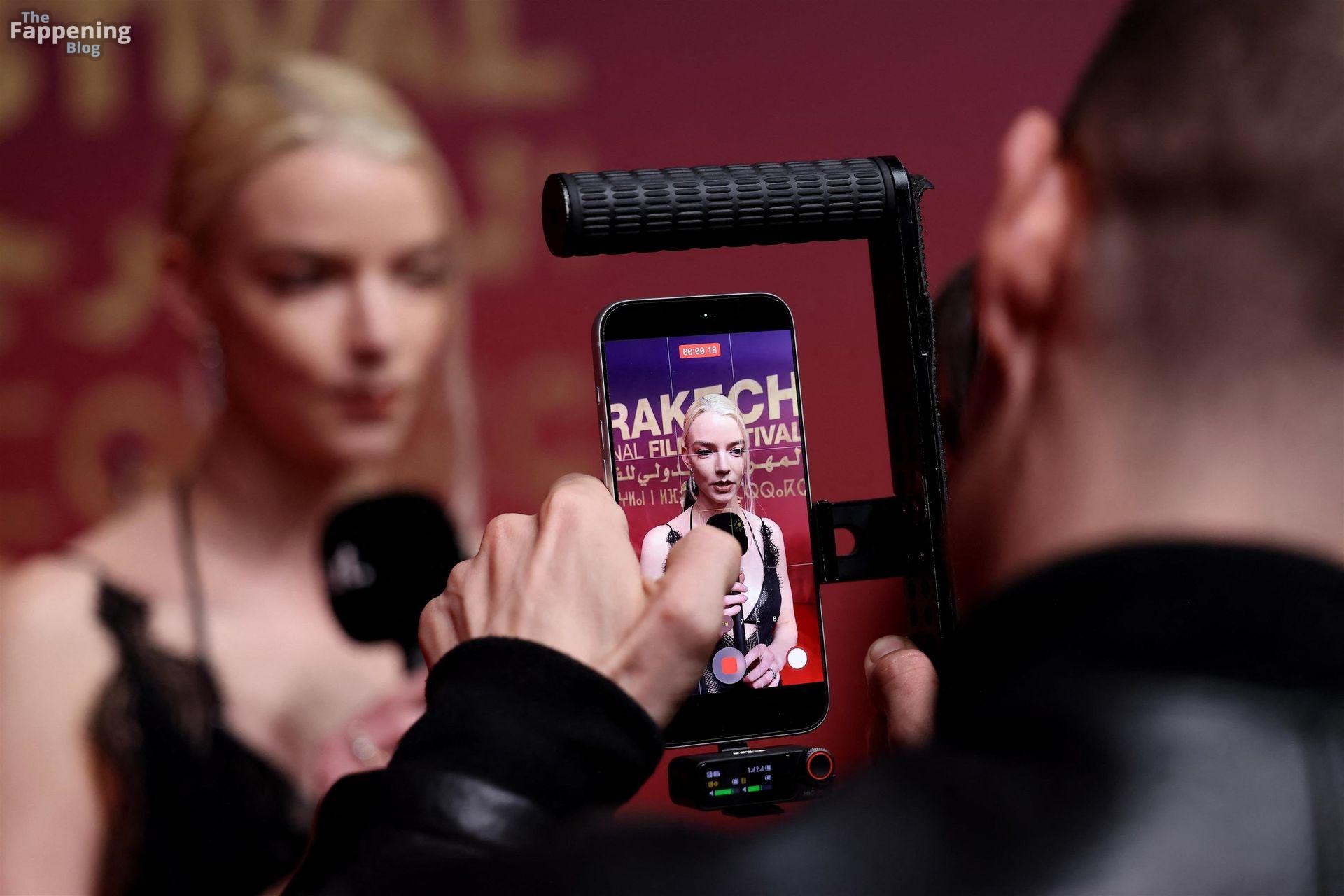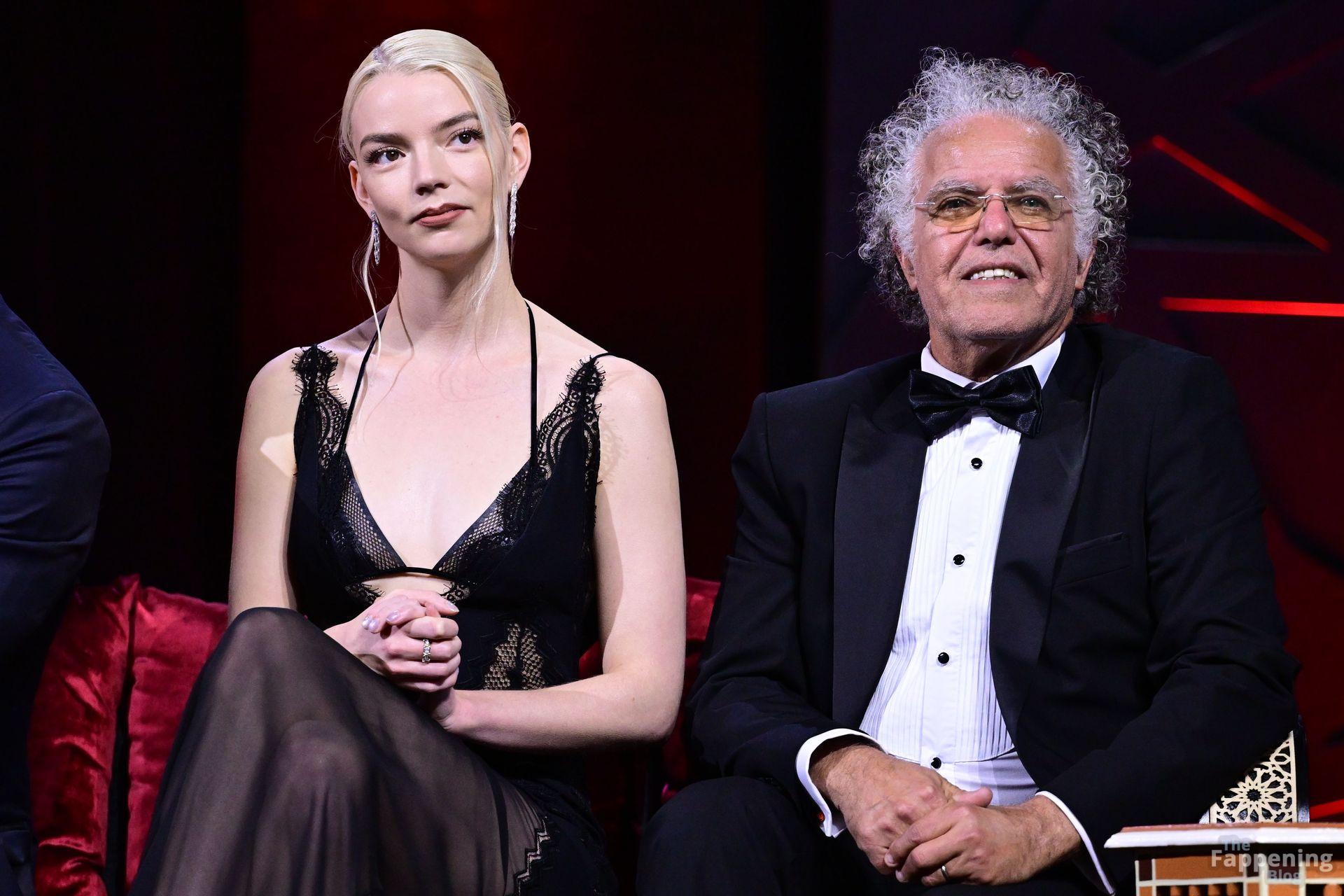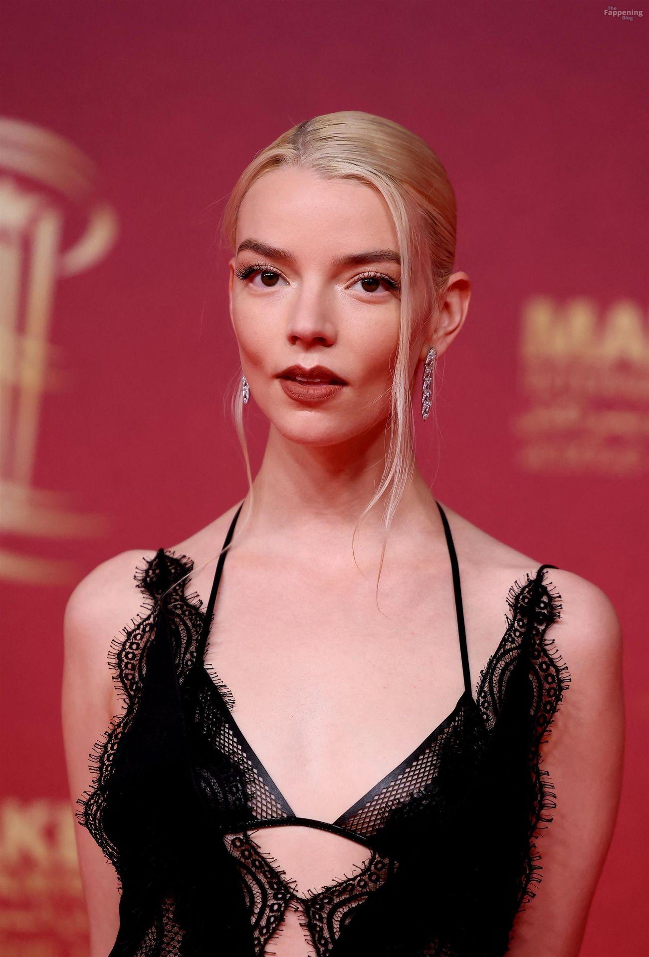 US actress Anya Taylor-Joy poses in a sheer lace dress showin’ her legs on the red carpet as she arrives for the closing ceremony of the 22nd Marrakesh Film Festival (FIFM) in Marrakesh.