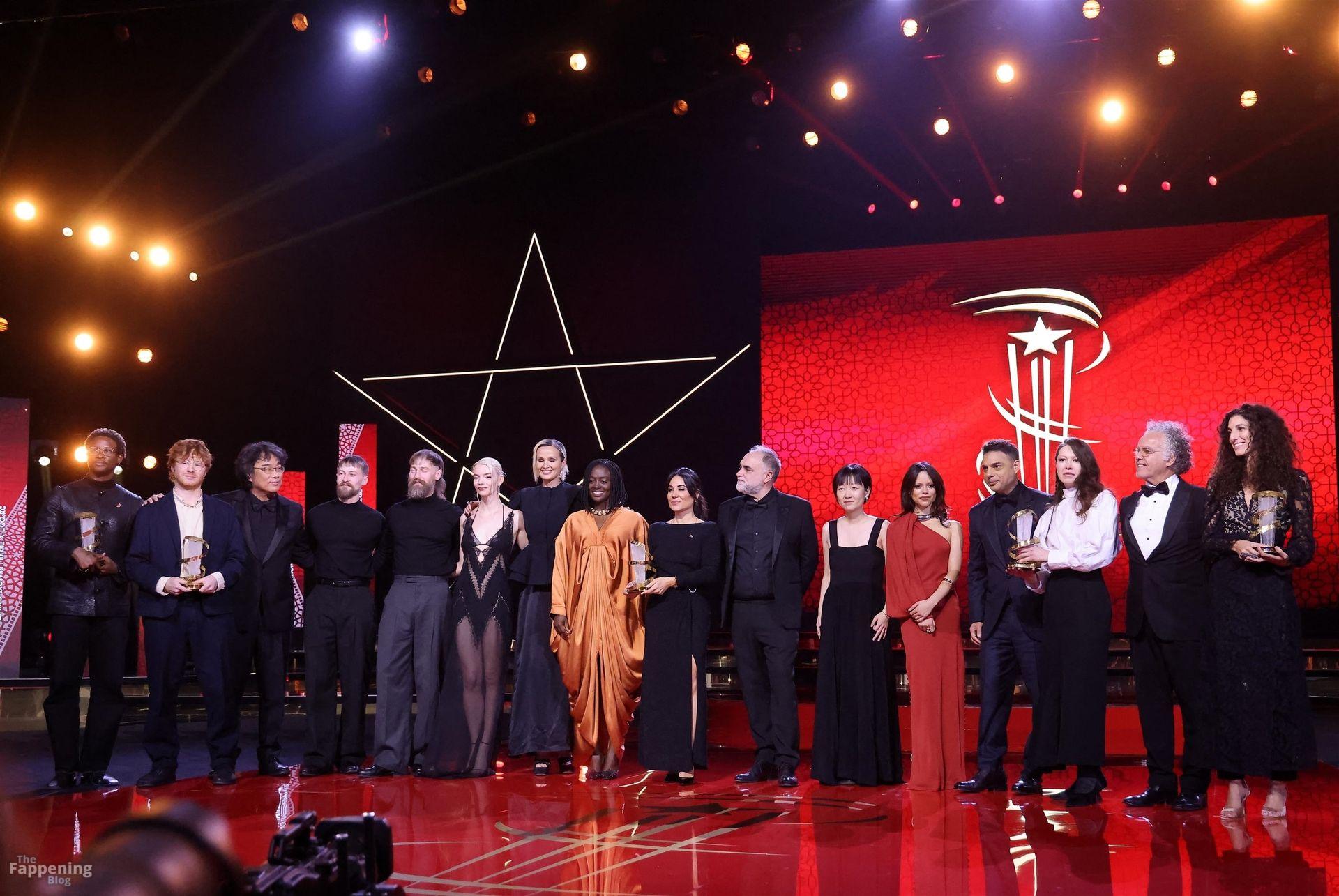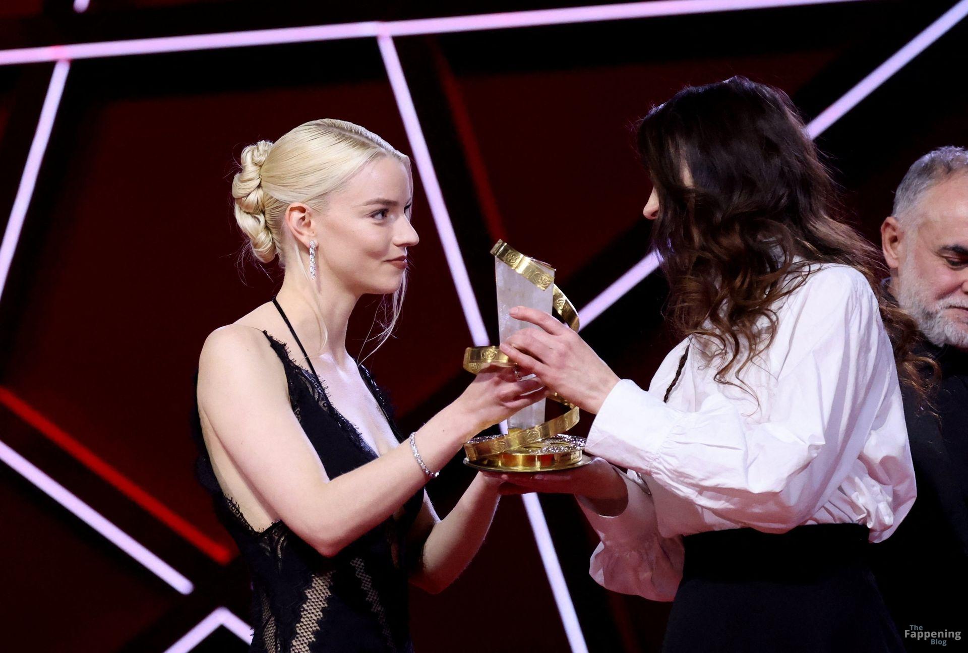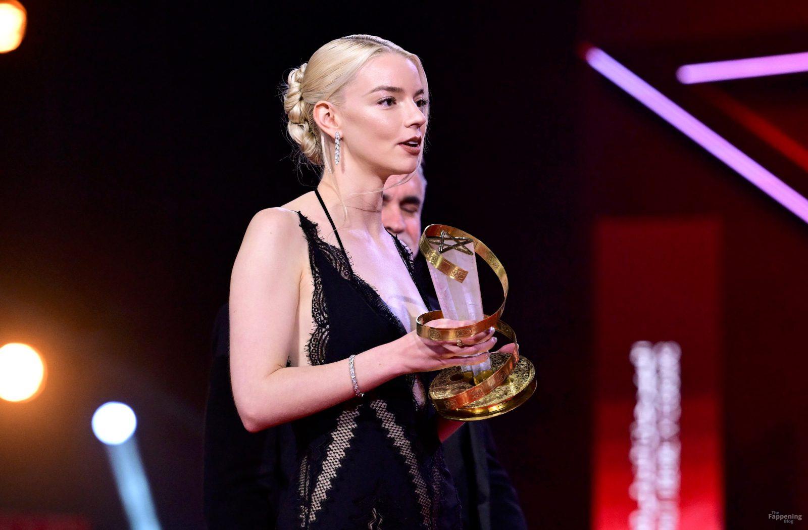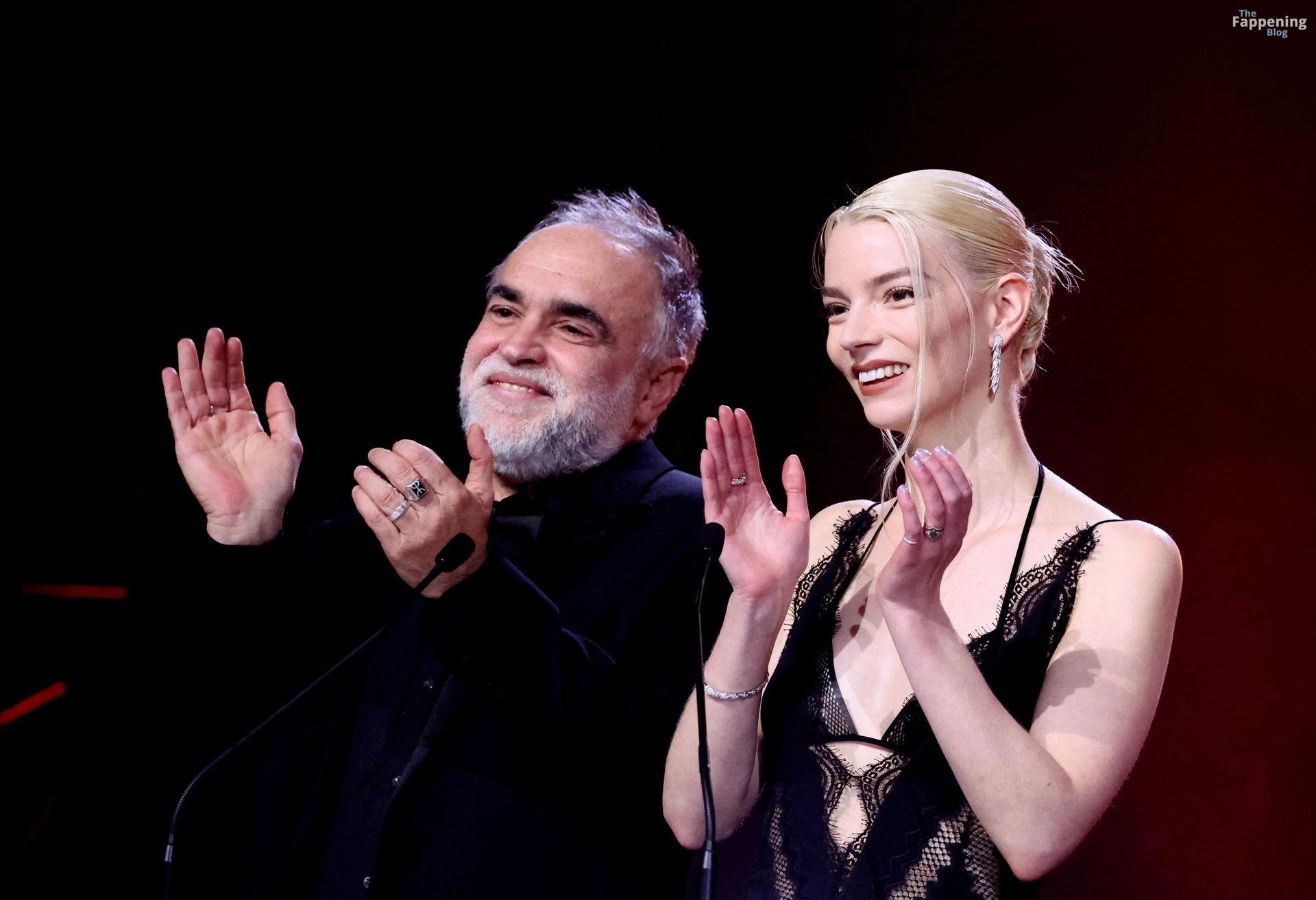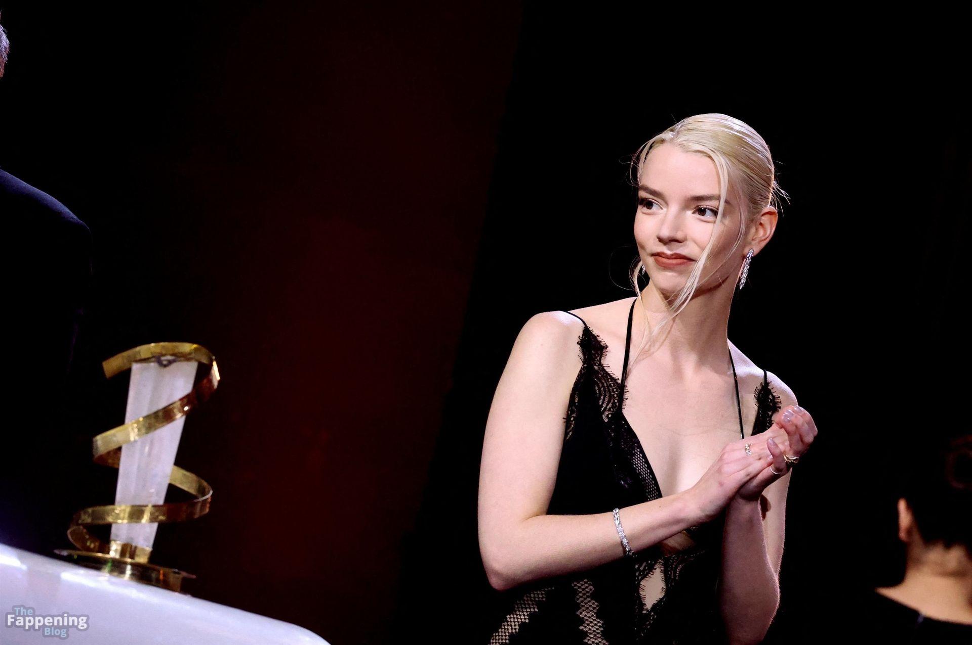 US actress Anya Taylor-Joy poses in a sheer lace dress showin’ her legs on the red carpet as she arrives for the closing ceremony of the 22nd Marrakesh Film Festival (FIFM) in Marrakesh.
