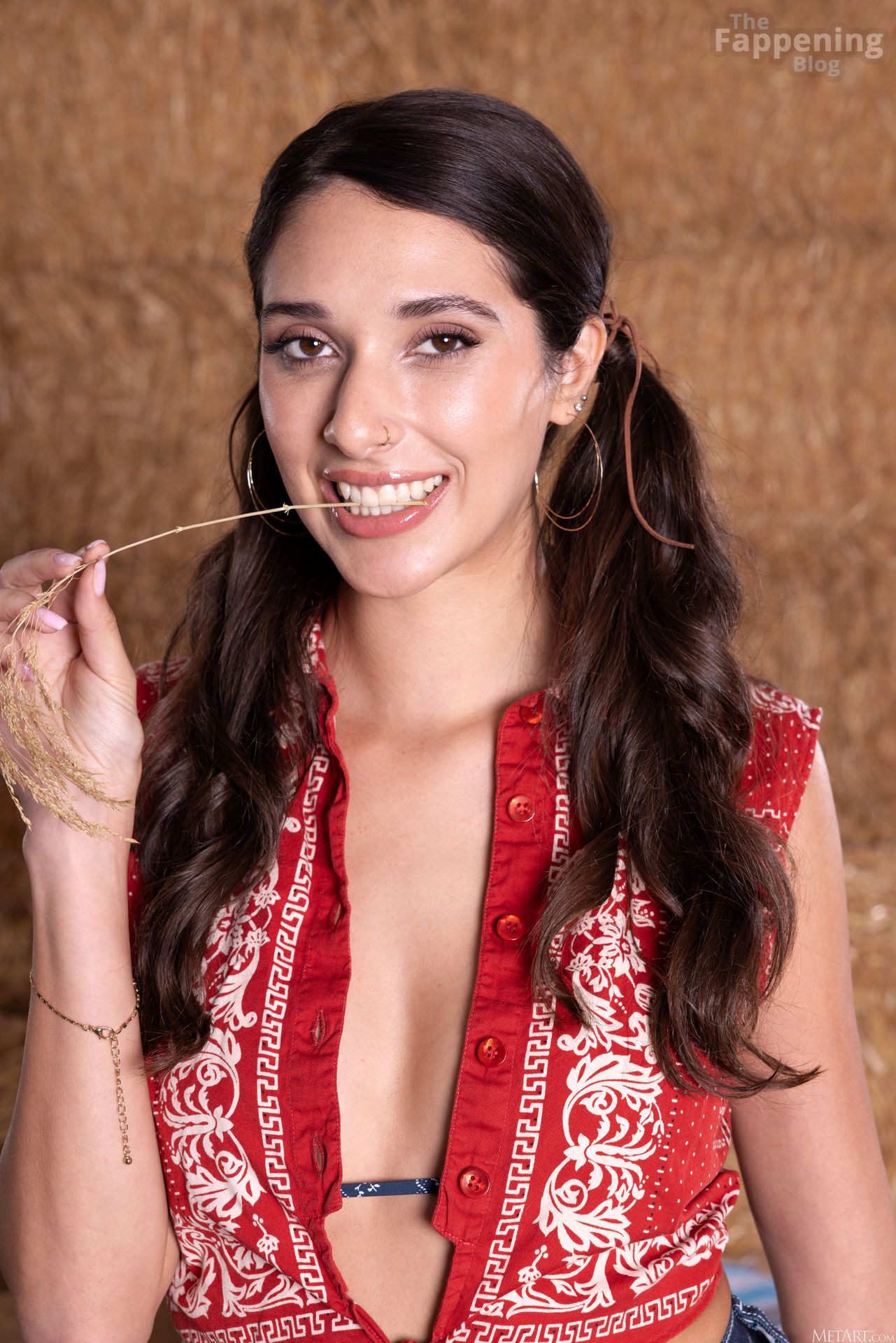 You’ve got to see Aria Sloane’s nude and sexy photos. The model (born 1999) fully embraces a cowgirl fantasy in a rustic setting with hay bales. She’s wearing these amazing tall suede boots that look straight out of a classic Western film.
