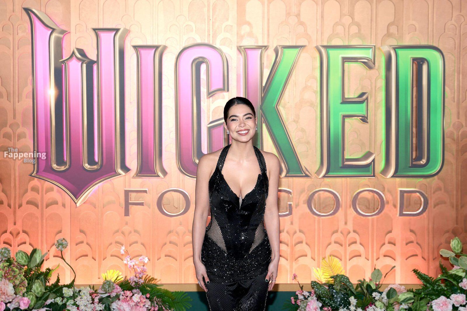 Actress Auli’i Cravalho puts her tits on display in a see-through mesh dress at the “Wicked: For Good” premiere at David Geffen Hall, Lincoln Center for the Performing Arts.