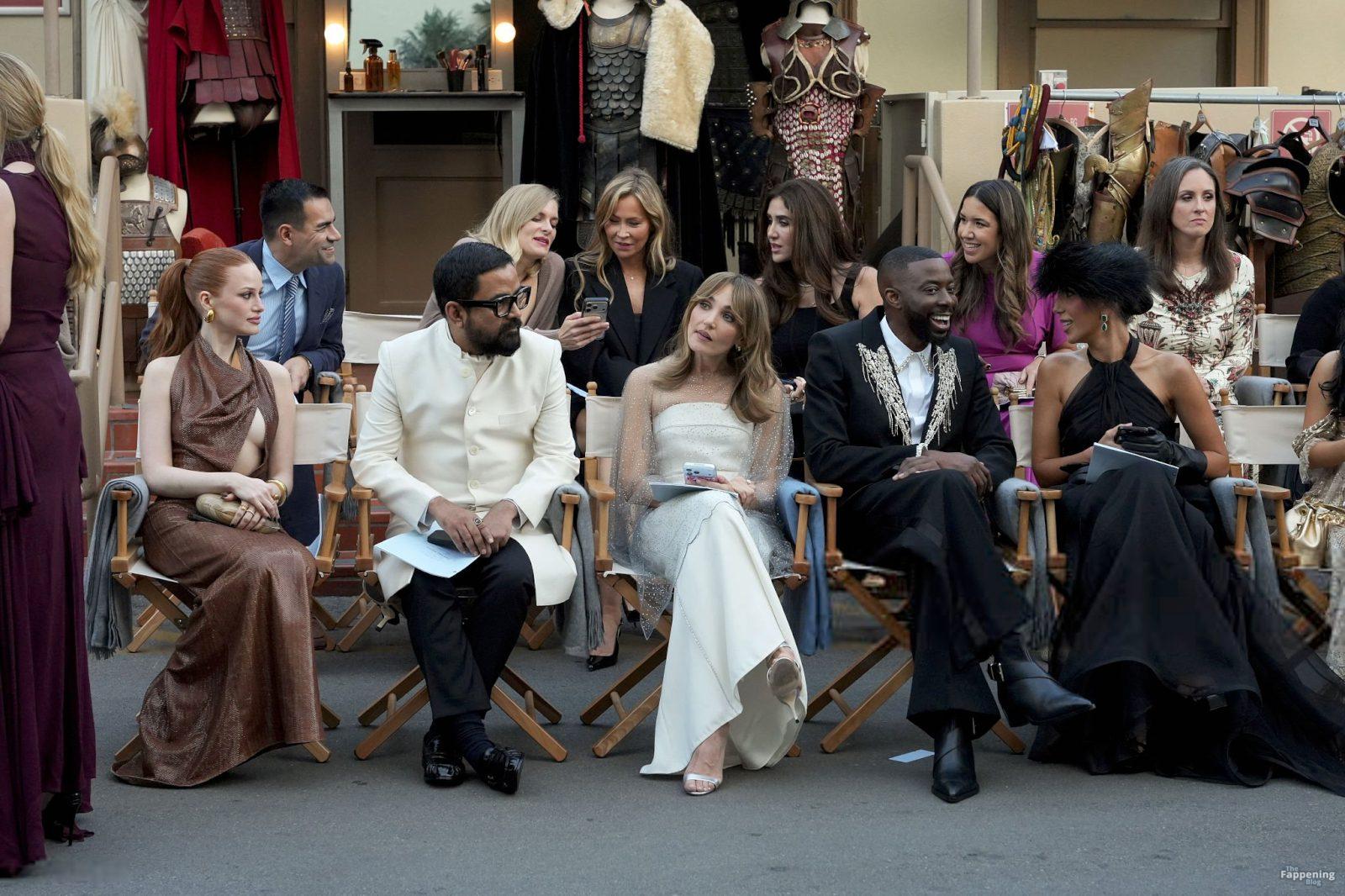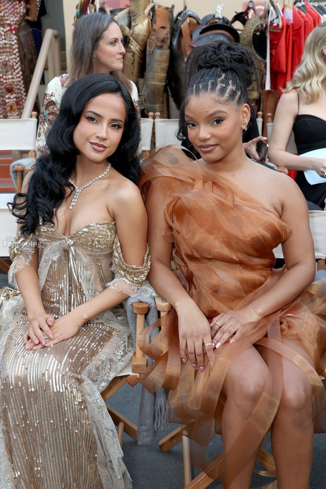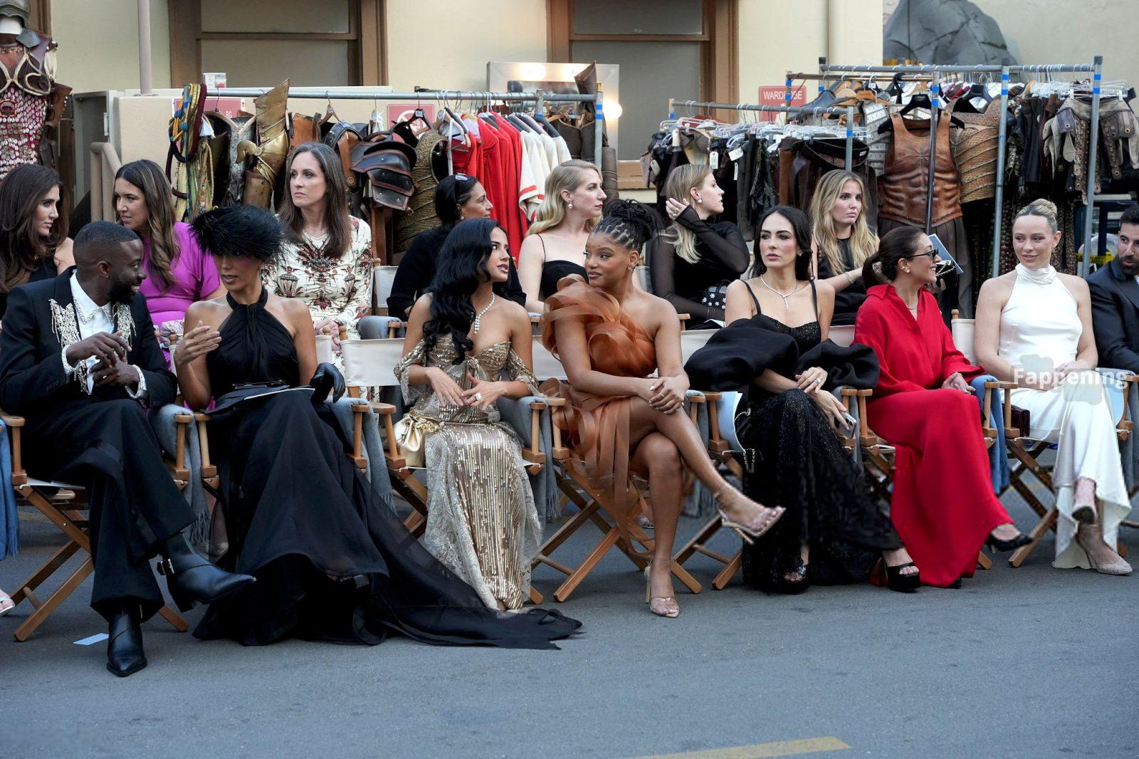 Singer Becky G shows off her cleavage wearin’ a gold sequin gown at Vogue World: Hollywood 2025.