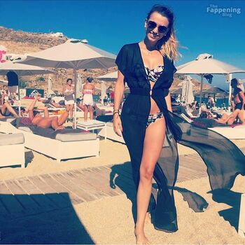 Actress Blanca Blanco hits the beach in a yellow knit swimsuit in Malibu, 08/29/2018. Blanca posed for pictures and pretended to lift up heavy rocks after dipping her toes in the ocean.