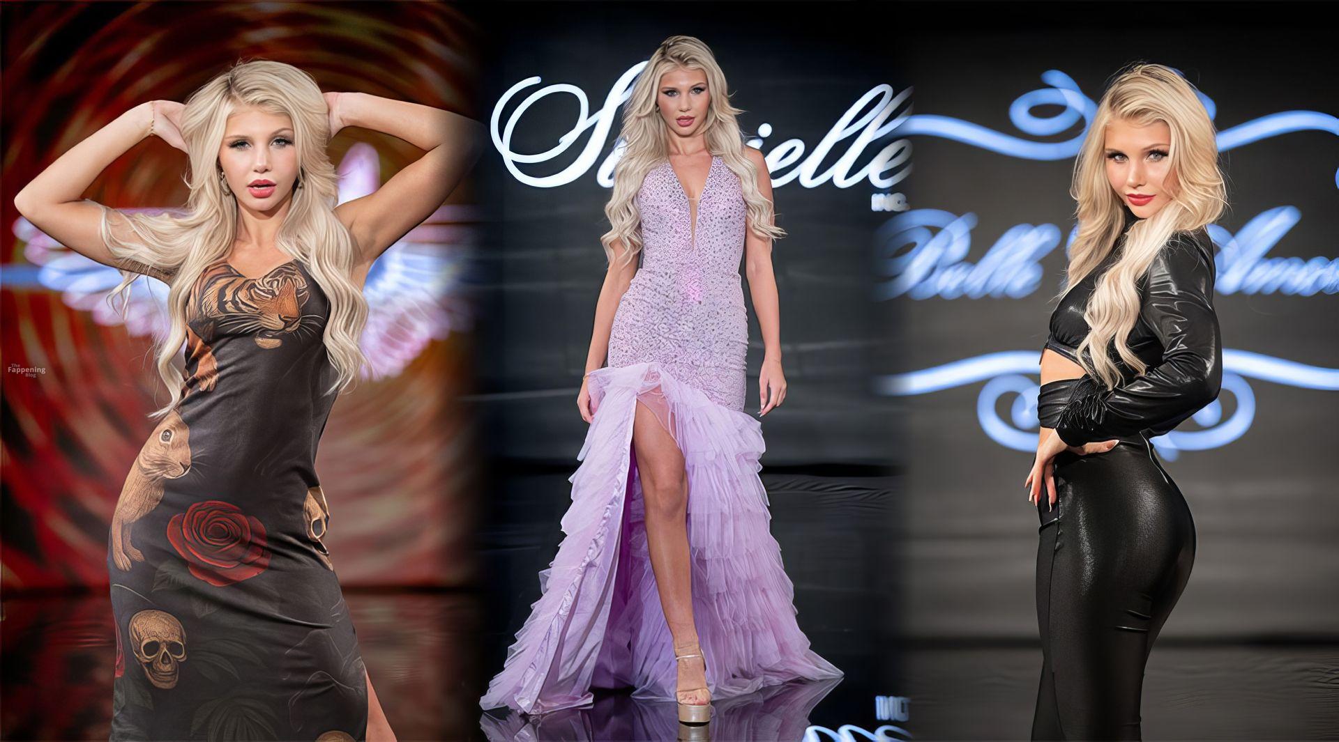Peep Brooklyn Riley’s sexy dresses, thigh-high slits, and corsets during the fashion show at NYFW.