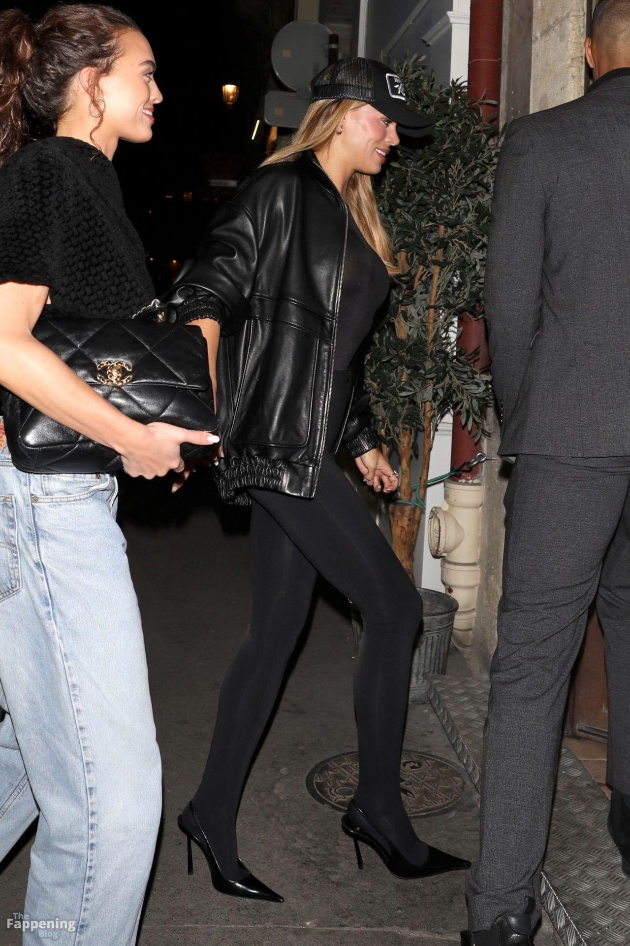 Model Brooks Nader went braless in a sheer black top, leggings, and stilettos in Paris.