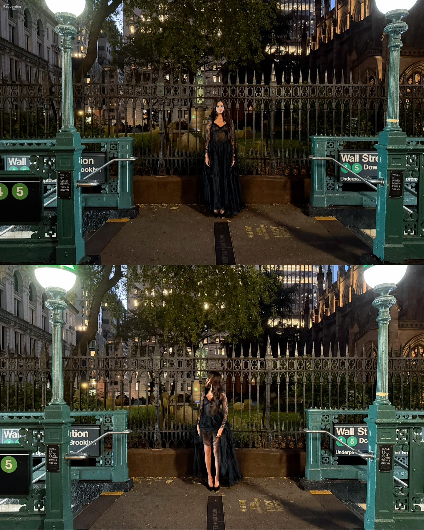 Brazilian model Gizele Oliveira was at Heidi Klum’s 24th annual Halloween party in New York City. She cosplayed Dolores, inspired by Monica Bellucci’s character from “Irreversible”, in a sheer black lace dress that left little to the imagination. No lingerie underneath, she wasn’t shy about flashin’ her nude tits in the revealing outfit.