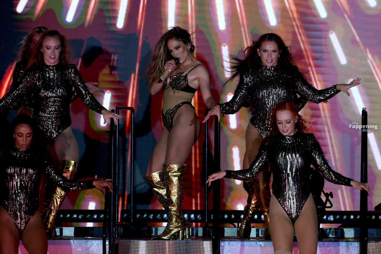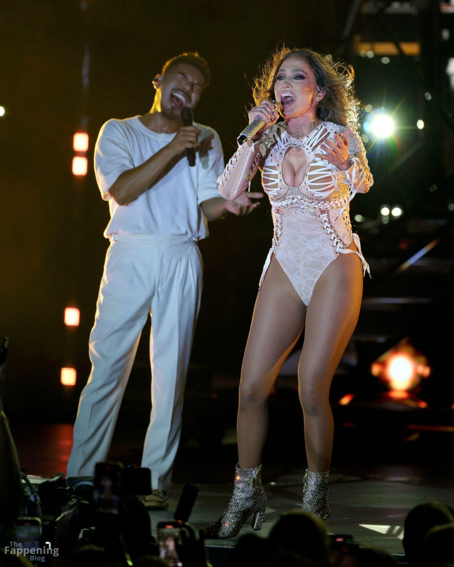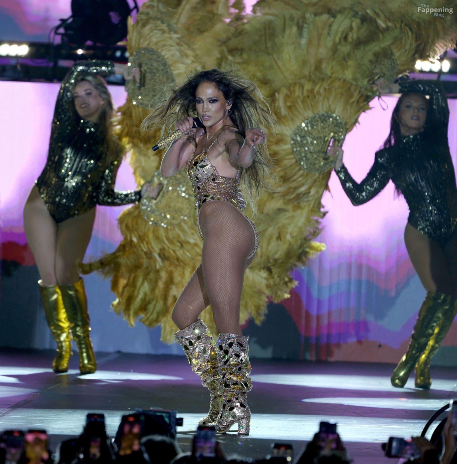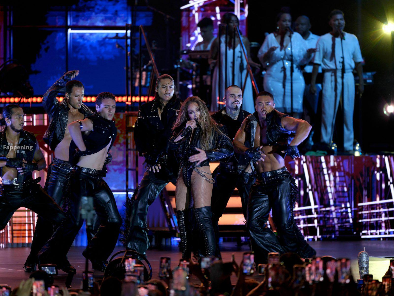Jennifer Lopez detonated the stage. She’s in a crystal-encrusted bodysuit that’s basically liquid diamonds poured over every curve, tits out, waist snatched, and that legendary booty bouncing and sparkling under the lights.