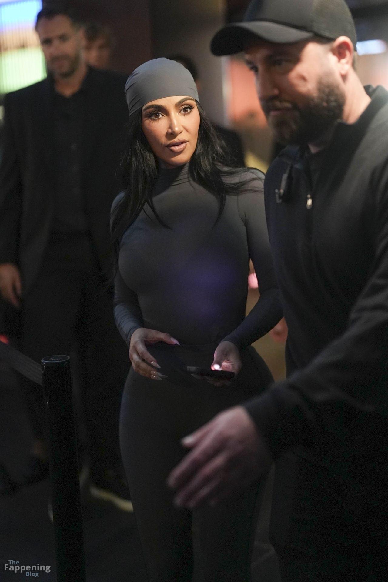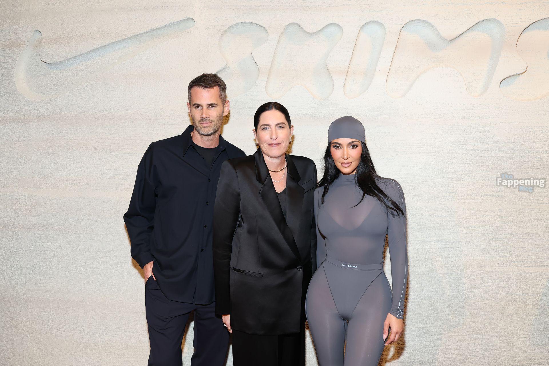 Kim Kardashian showed off her goods in a see-through gray catsuit at the Nike x SKIMS Bodies At Work NYC launch. She hit up the launch event at Nike House of Innovation in New York City.