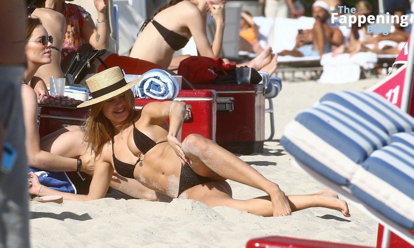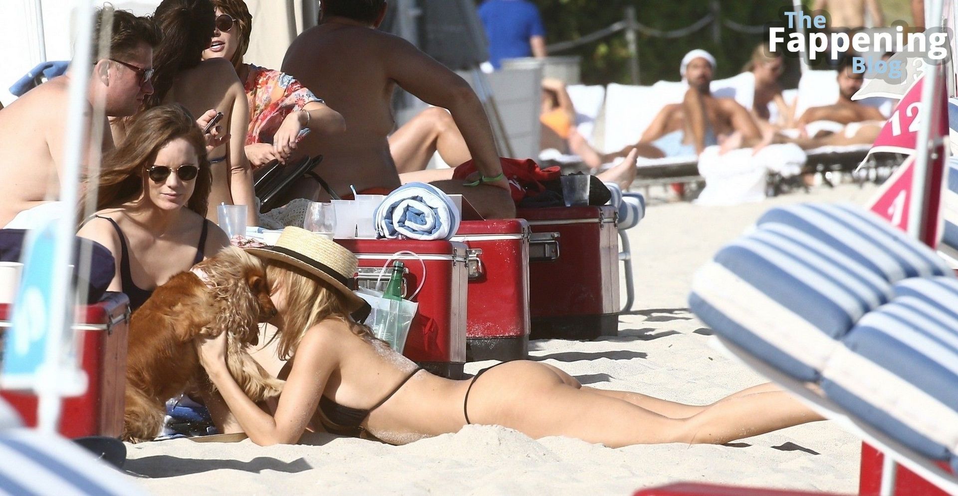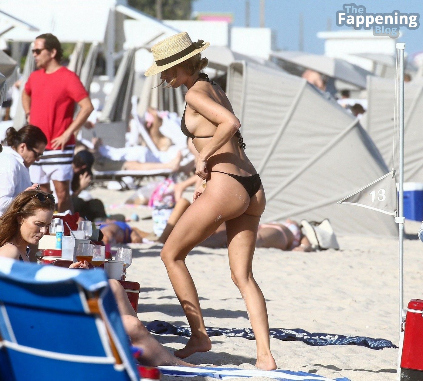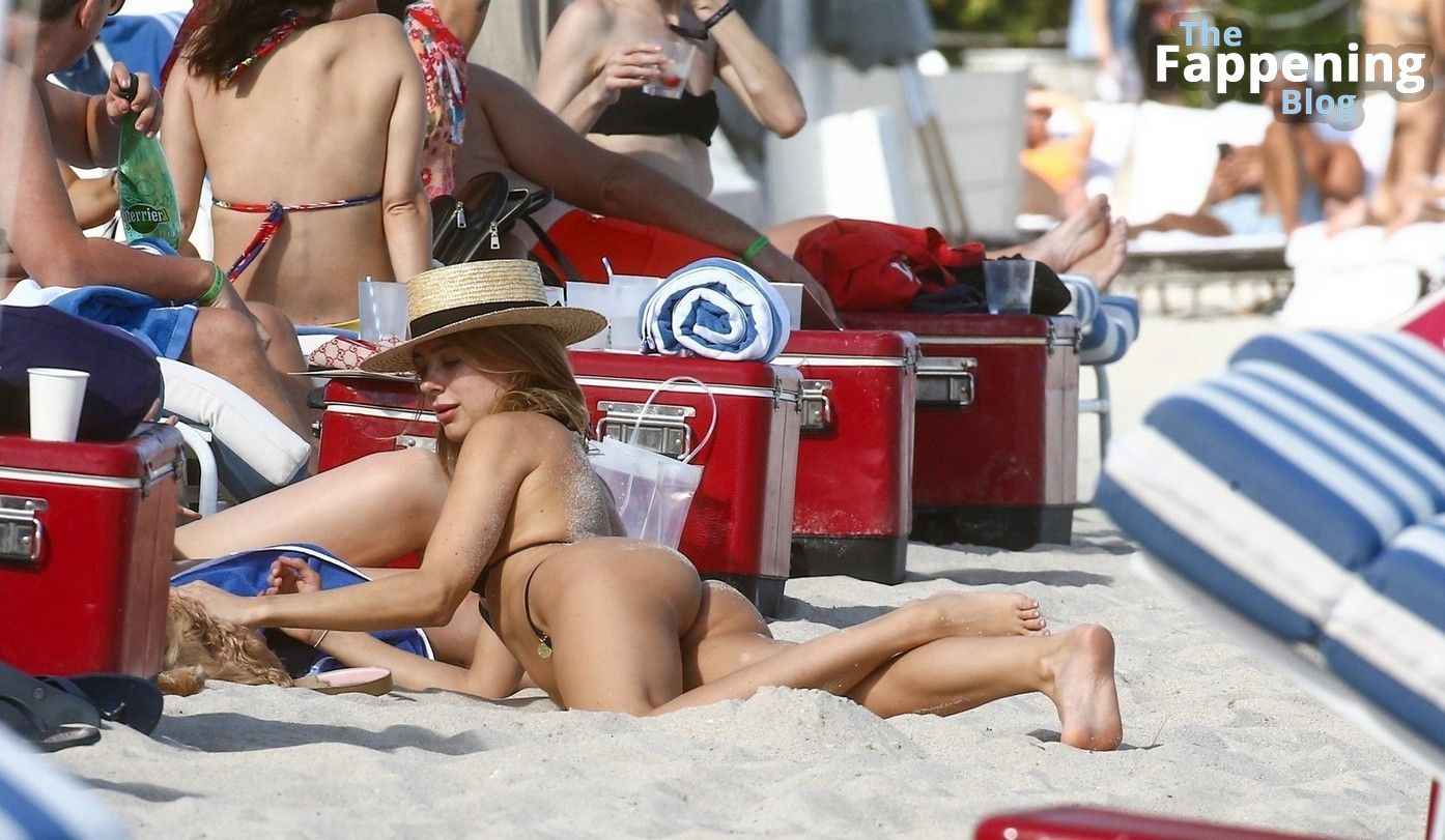 Kimberley Garner spent some good time on the beach in Miami, she posed in a sexy bikini in front of paparazzi and even showed off her shaved pussy a little bit!