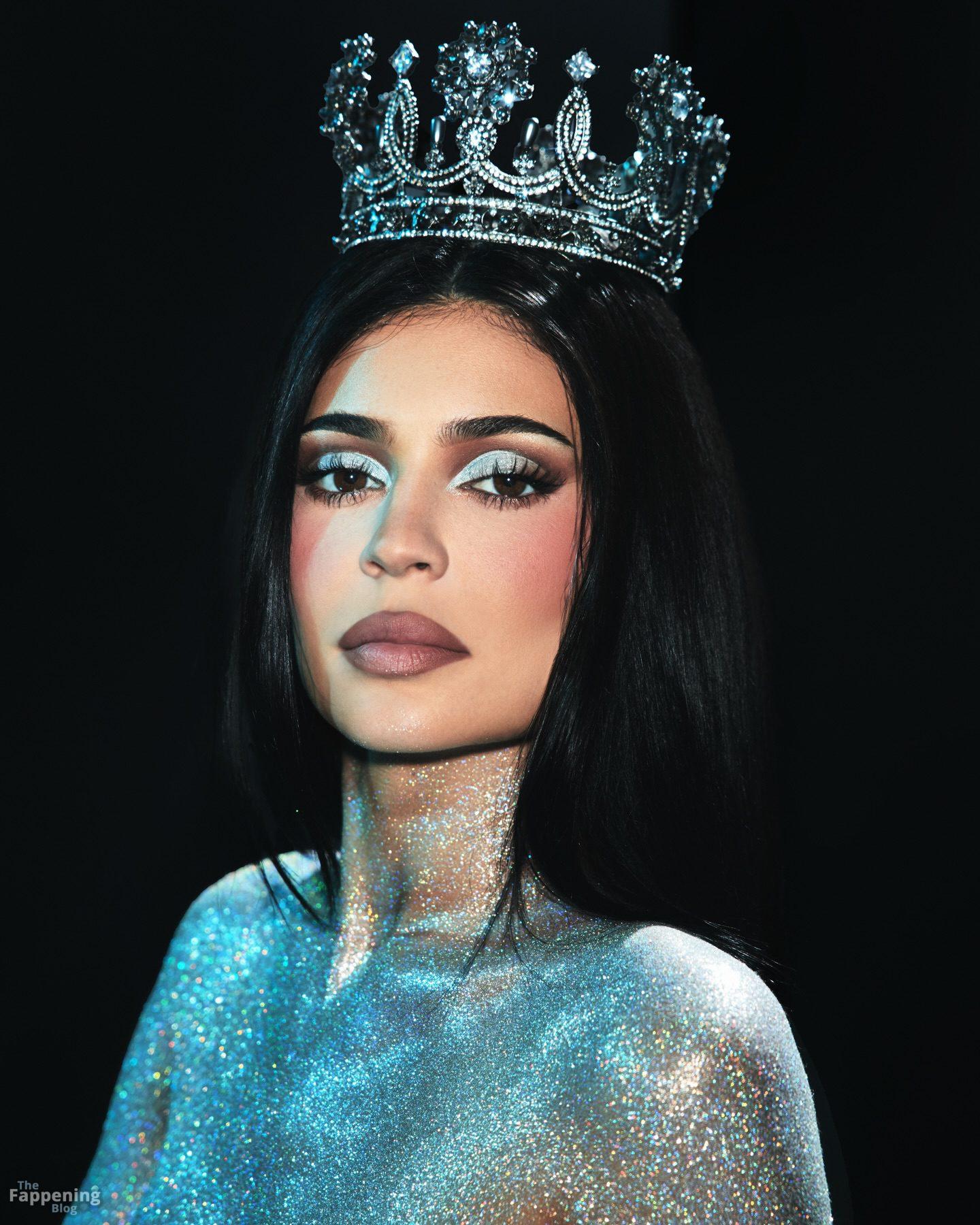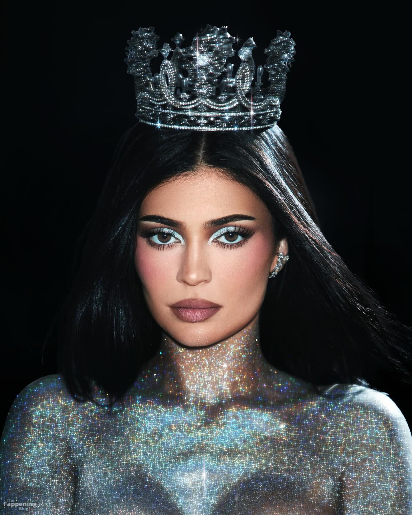 Kylie Jenner shows off her goods in leather, glitter, and semi-naked shots for King Kylie’s anniversary collection.