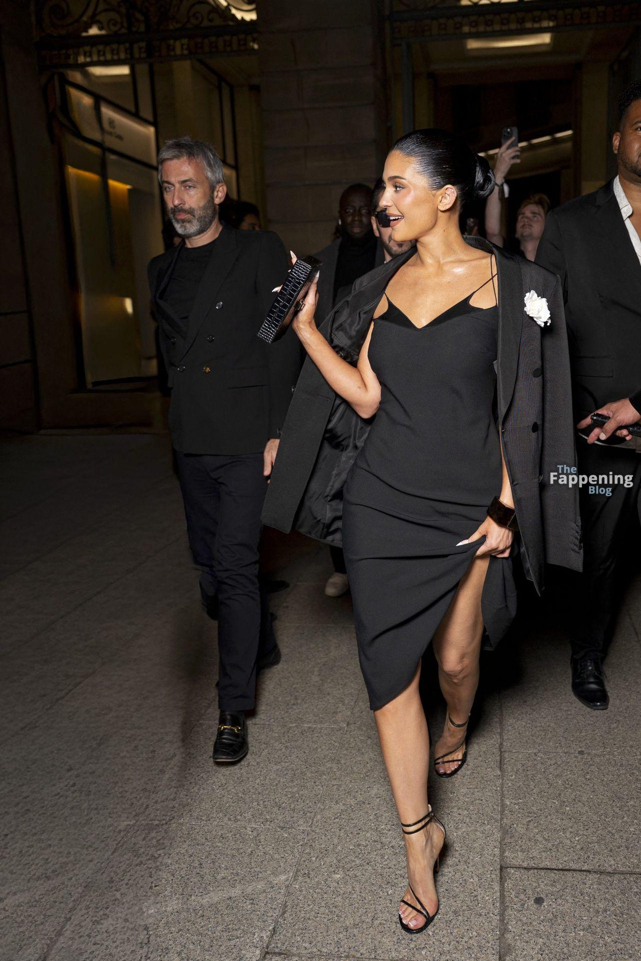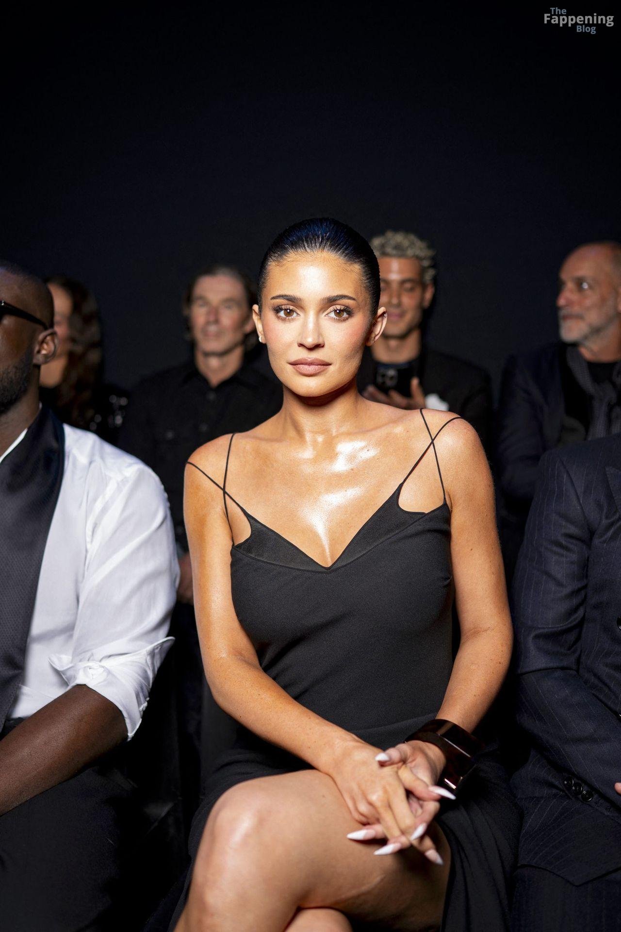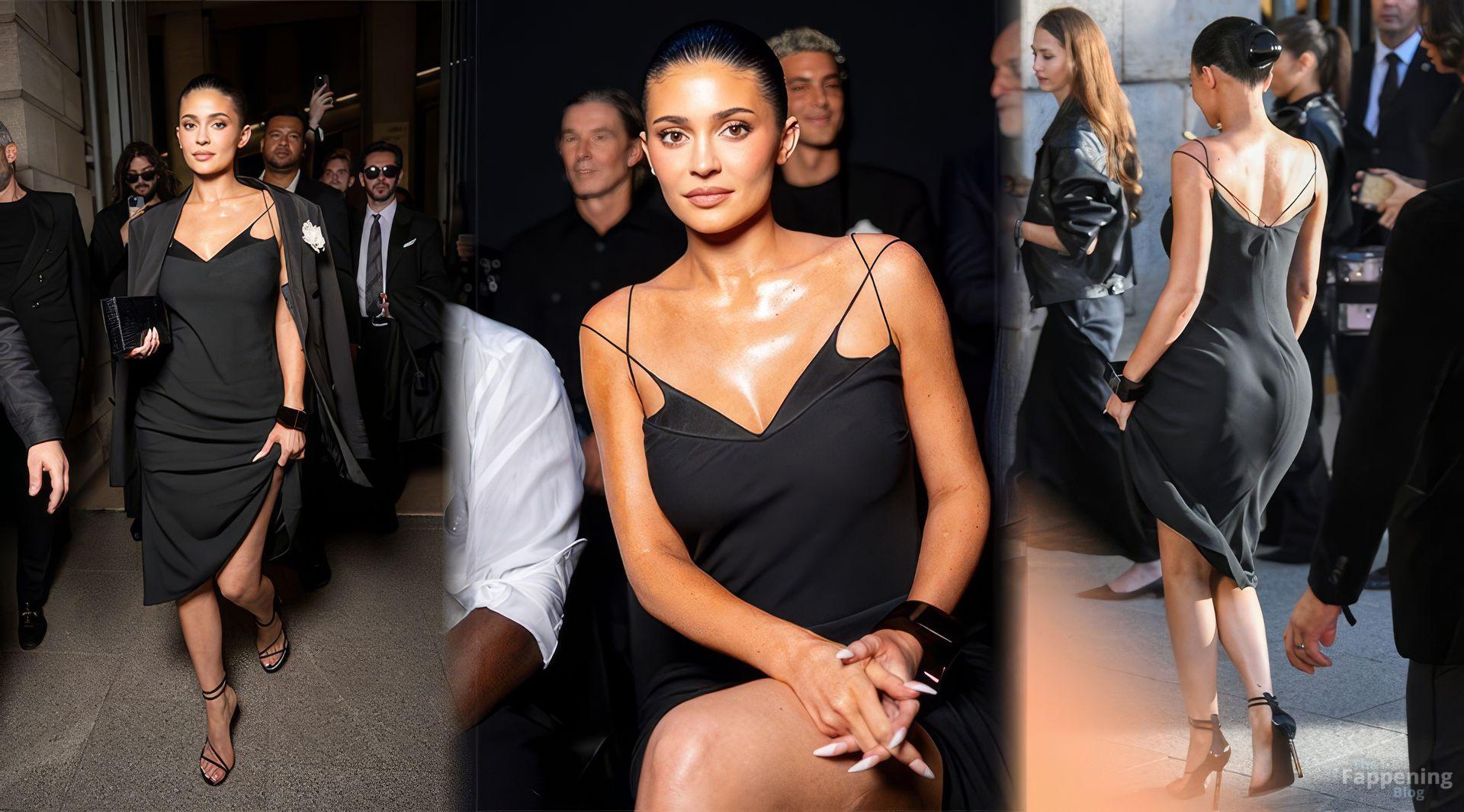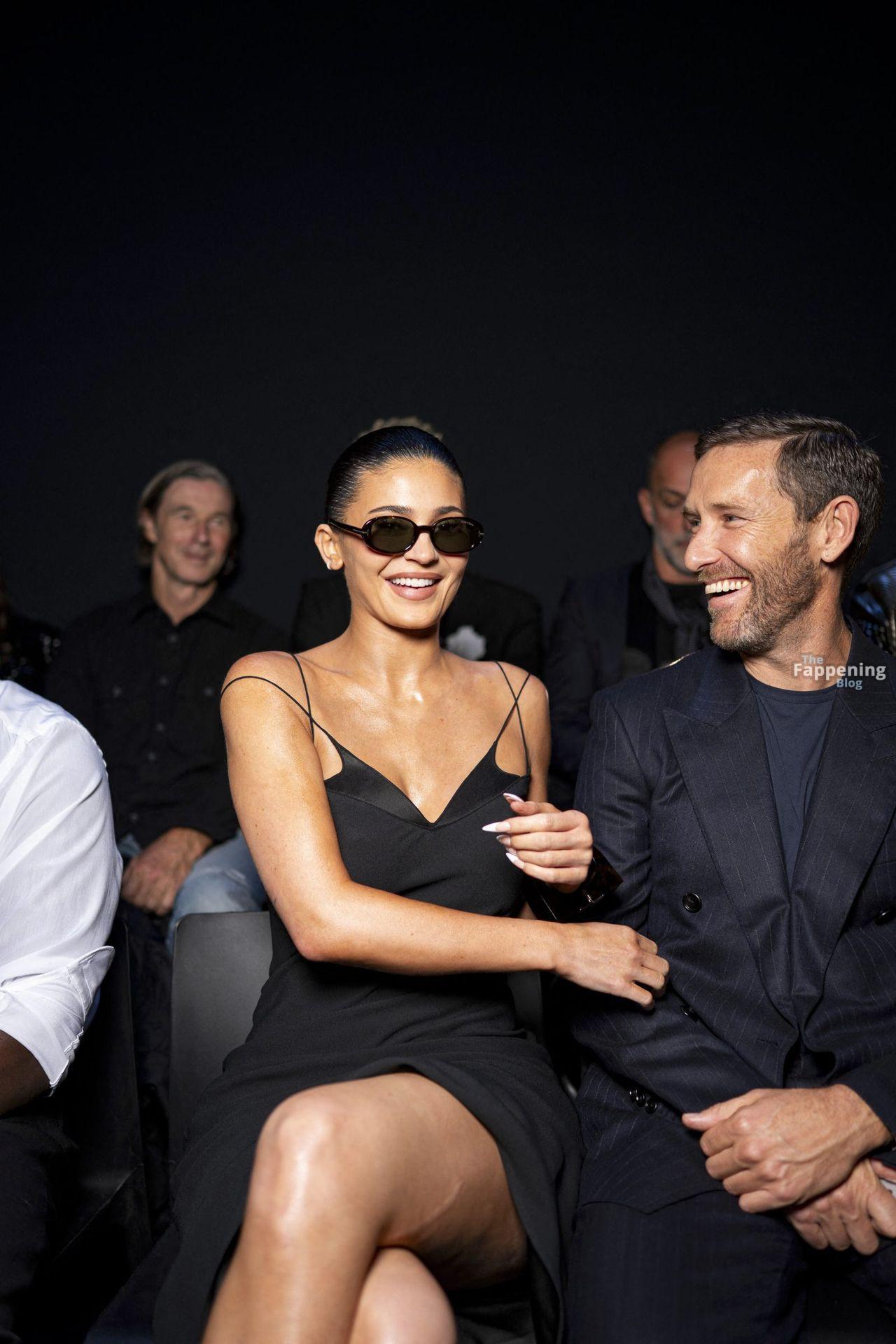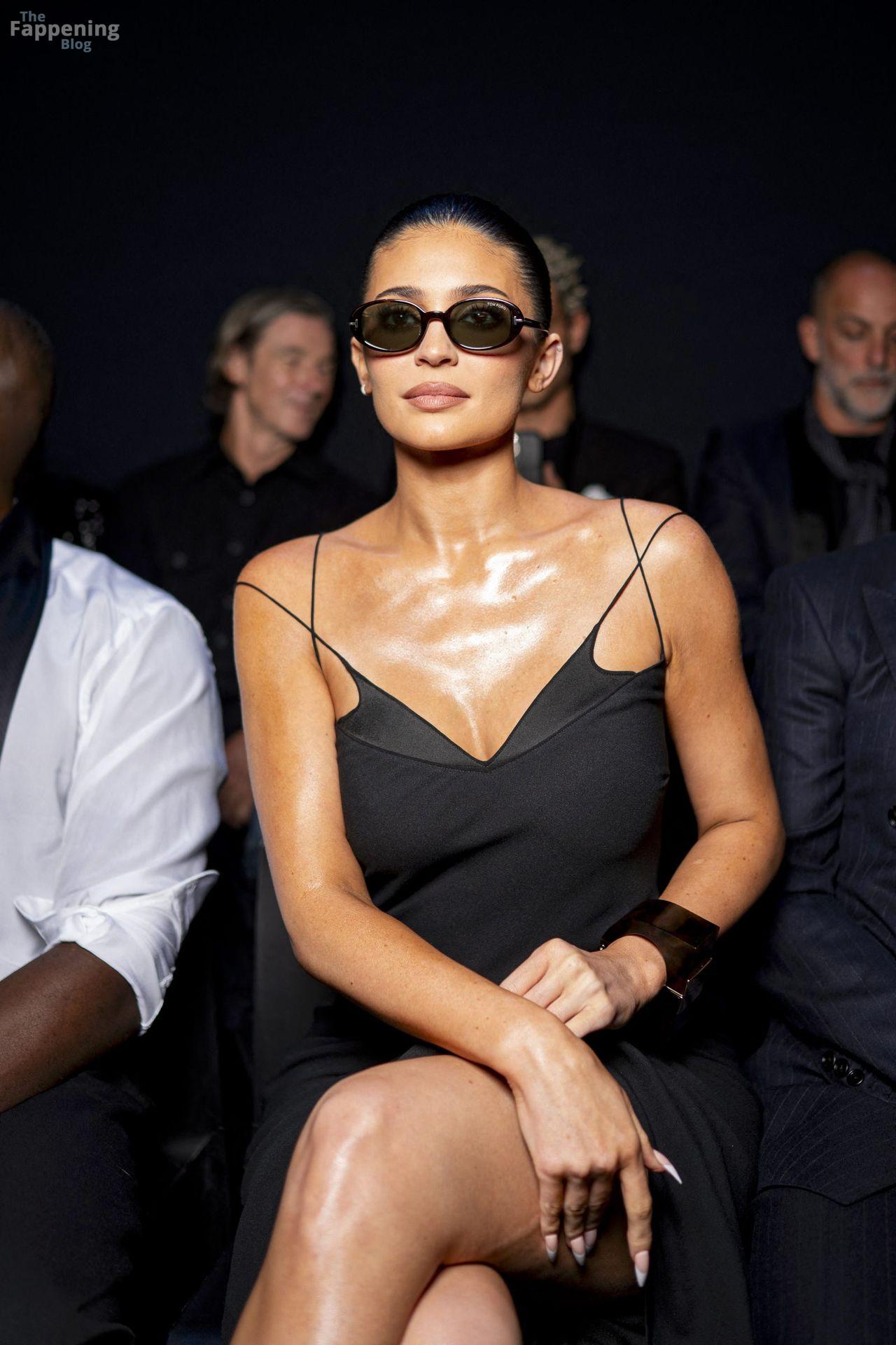 Kylie Jenner lit up Tom Ford’s show in Paris, showin’ off her goods in a sexy black dress with a bold thigh-high slit.