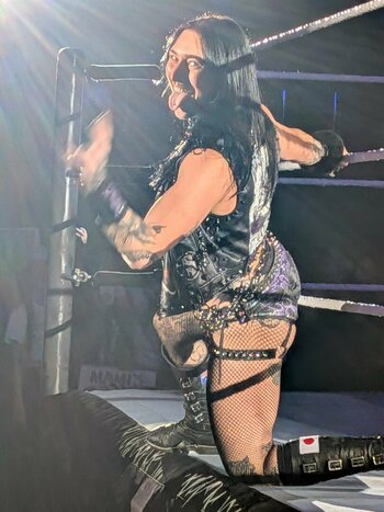 Sports Illustrated swimsuit model Marisa Miller is wearing a red bustier with black panties, a garter, and stockings. Then she poses for a photographer in front of a motorcycle before a guy walks up and interrupts him for a bit.