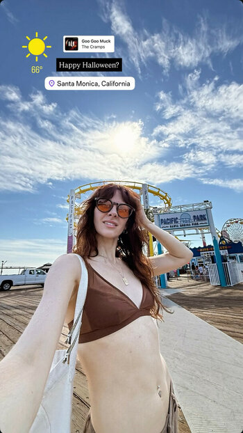 Noah Cyrus is looking hot in a tiny bikini as she casually strolls into the ocean, then chills out with a picnic on the shore.