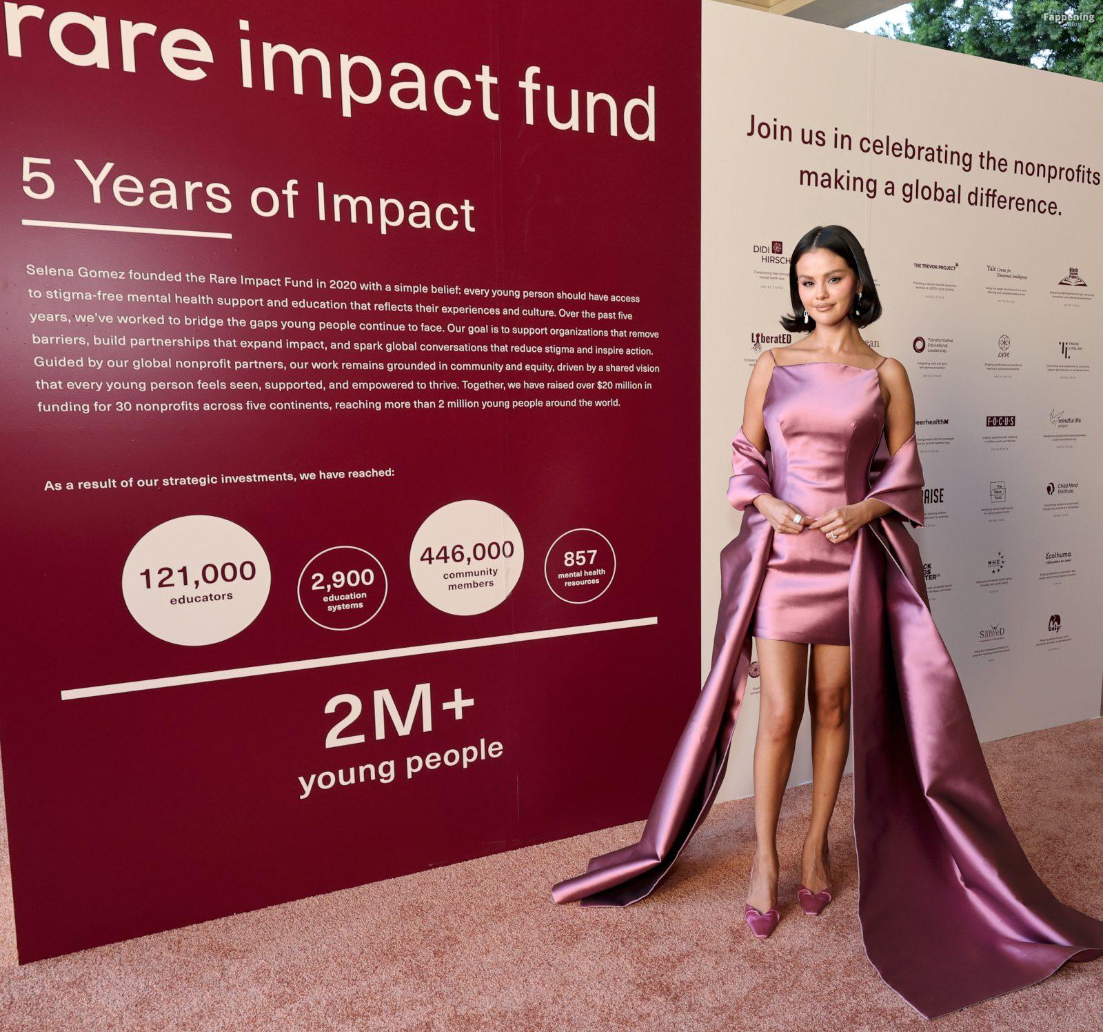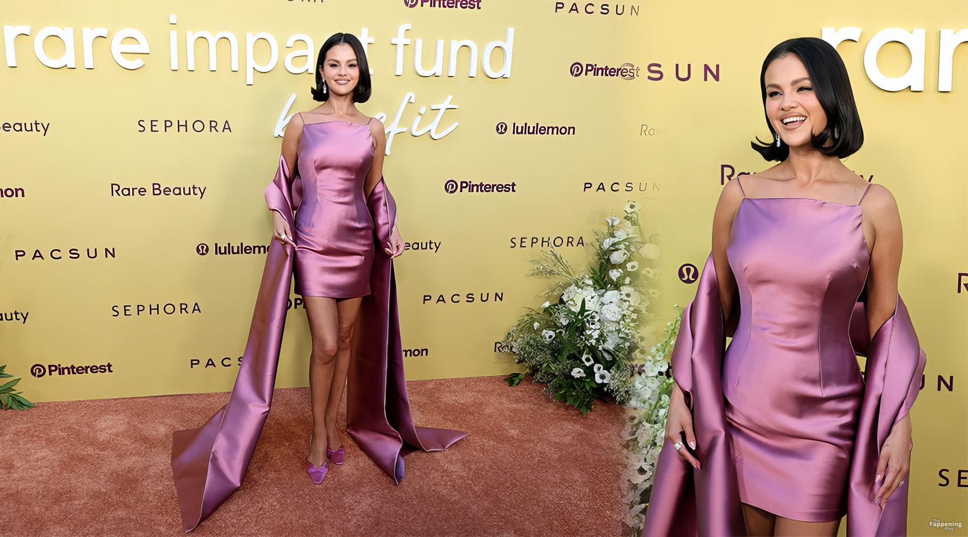 American actress, singer, producer, songwriter, and businesswoman Selena Gomez lit up the 3rd Annual Rare Impact Fund Benefit in Hollywood, rockin’ a rose satin mini that showed off her stunning legs .