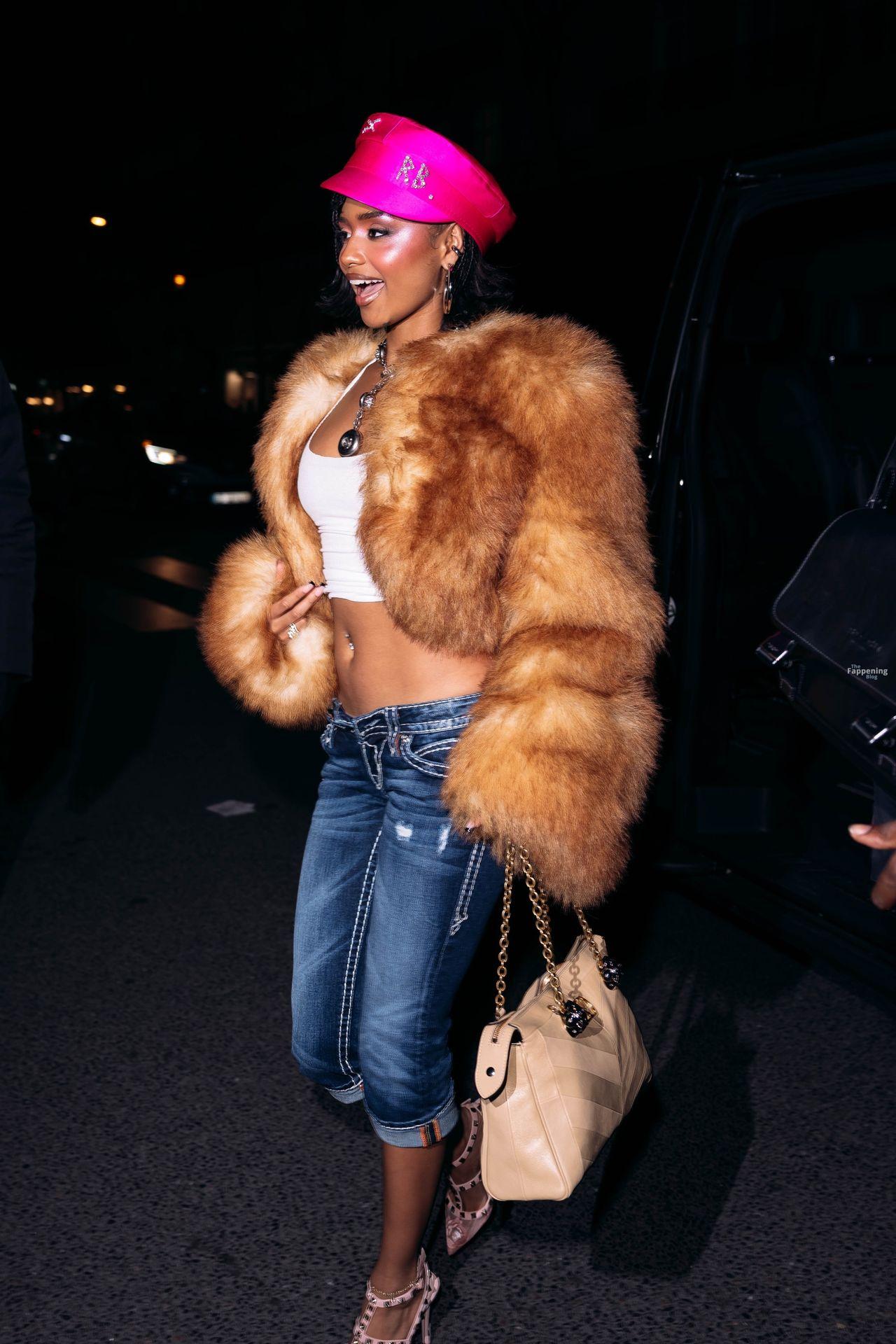 Tyla lights up the night as she steps out for a Valentino event, showin’ off her bold fashion-forward look in a pink hat from Ruslan Baginskiy.